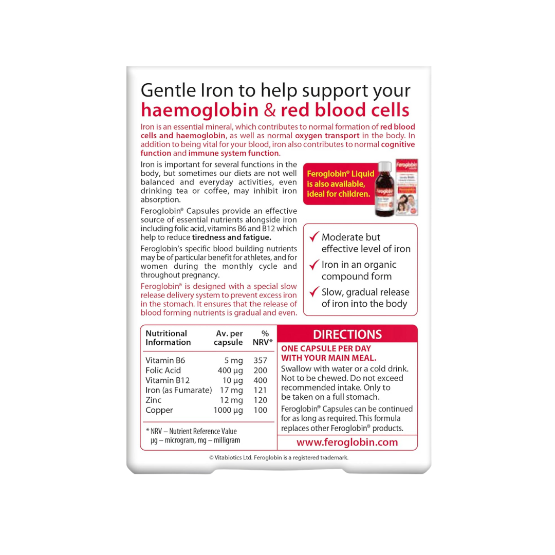 Feroglobin Original by Vitabiotics offers a gentle iron supplement with essential B vitamins in 30 easy-to-swallow capsules.
